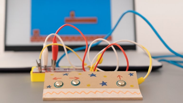 Construïm un gamepad (comandament) usant Makey Makey per moure un personatge en una pantalla i després poder jugar al Super Mario Bros.