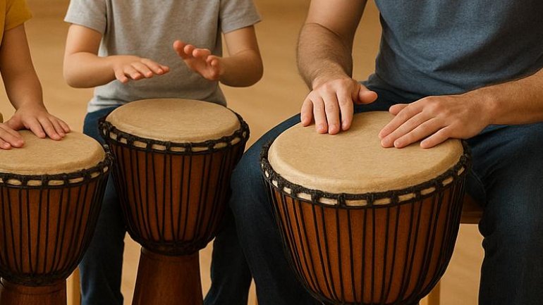 Als petits de casa els encanten els tambors. És el primer instrument amb el que més fàcilment s'hi relacionen i troben la manera d'expressar-se. Explorar aquests instruments a través ritmes i cançons africanes ens permet crear un espai d'escolta musical i comunicació a través de l'instrument.